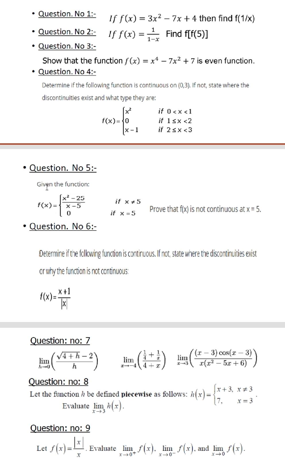 Solved Question No 1 If F X 3x2 7x 4 Then Find Chegg Com